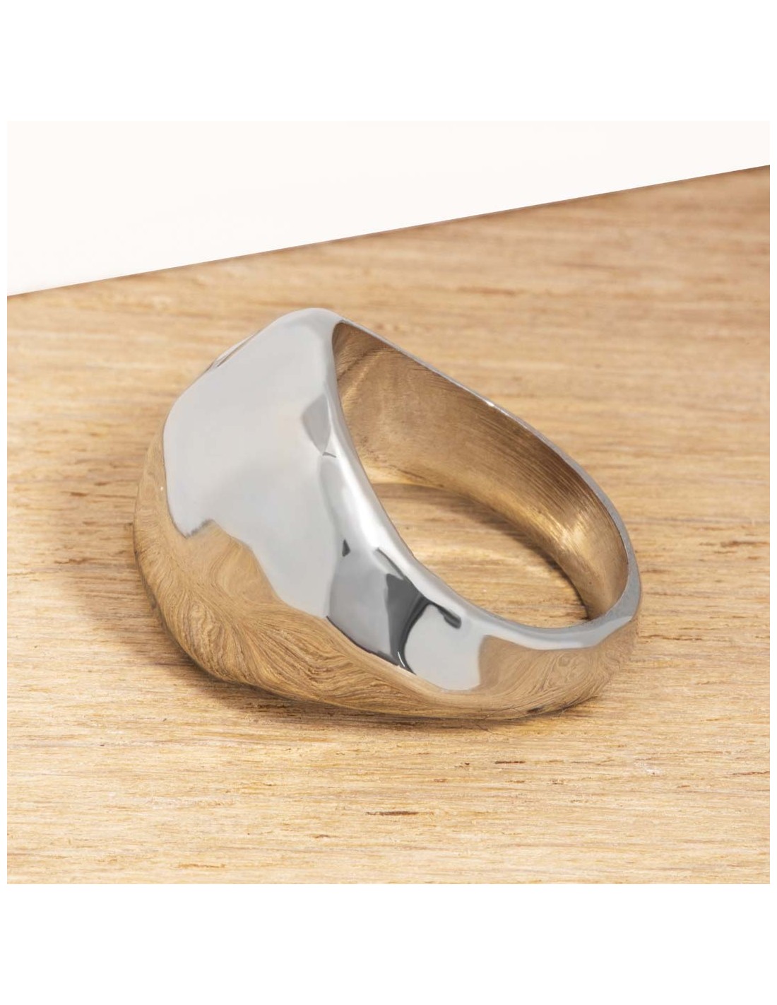 Ring OTOLANE Silver color Full Hammered Ring Rhodium coated