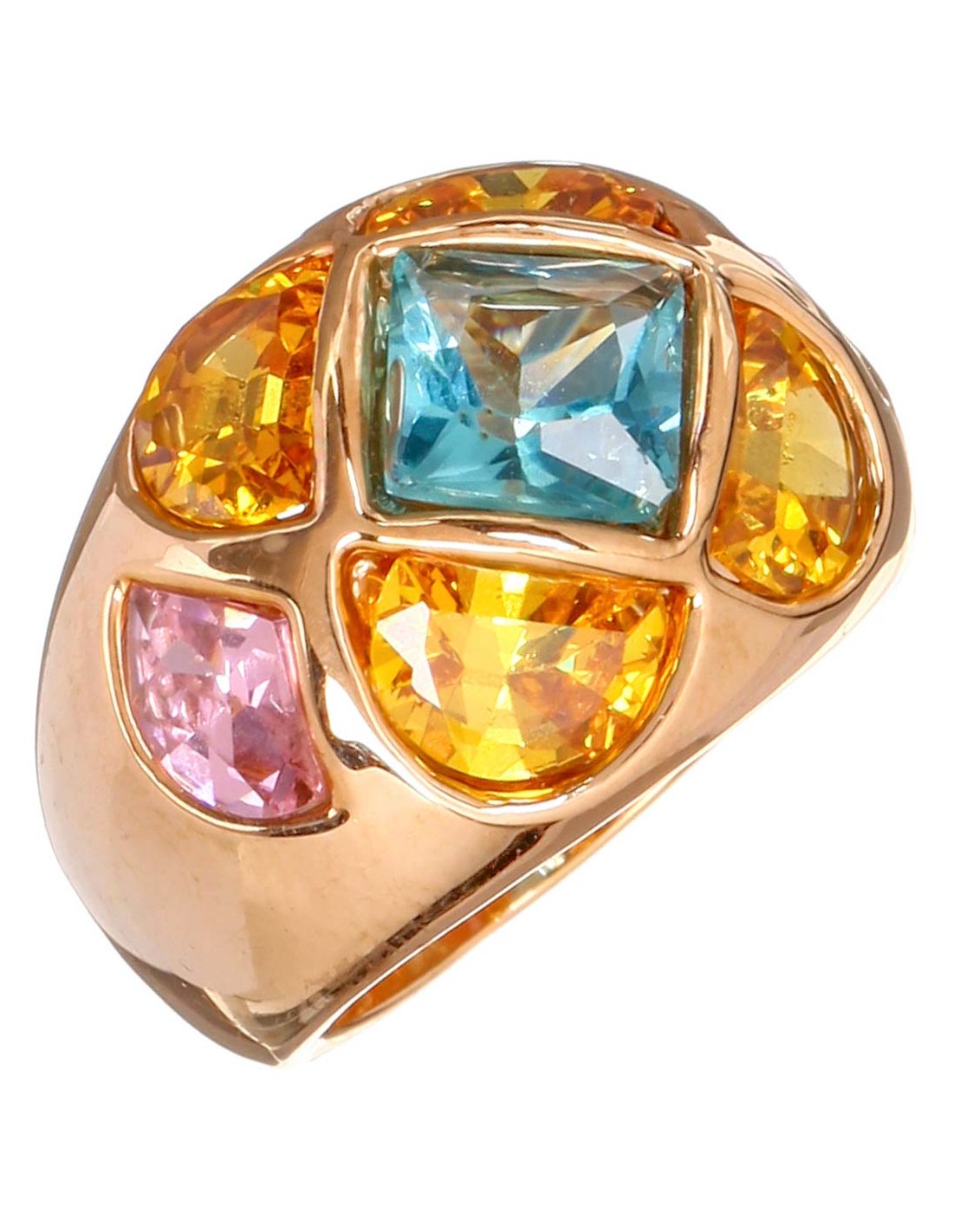 SPRINGDOME Color Gold Cocktail Ring Pavé Domed Gold and Multicolor Brass gilded with fine gold Zirconia set