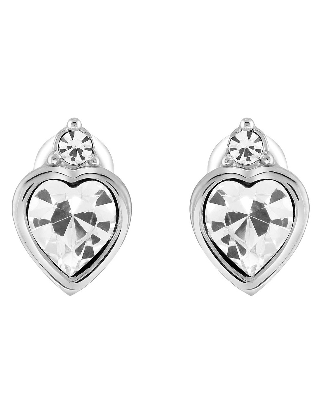 Boucles d'oreilles AMOR White Silver Puces clous Cœur bombé Argent et Blanc Rhodium Cristal