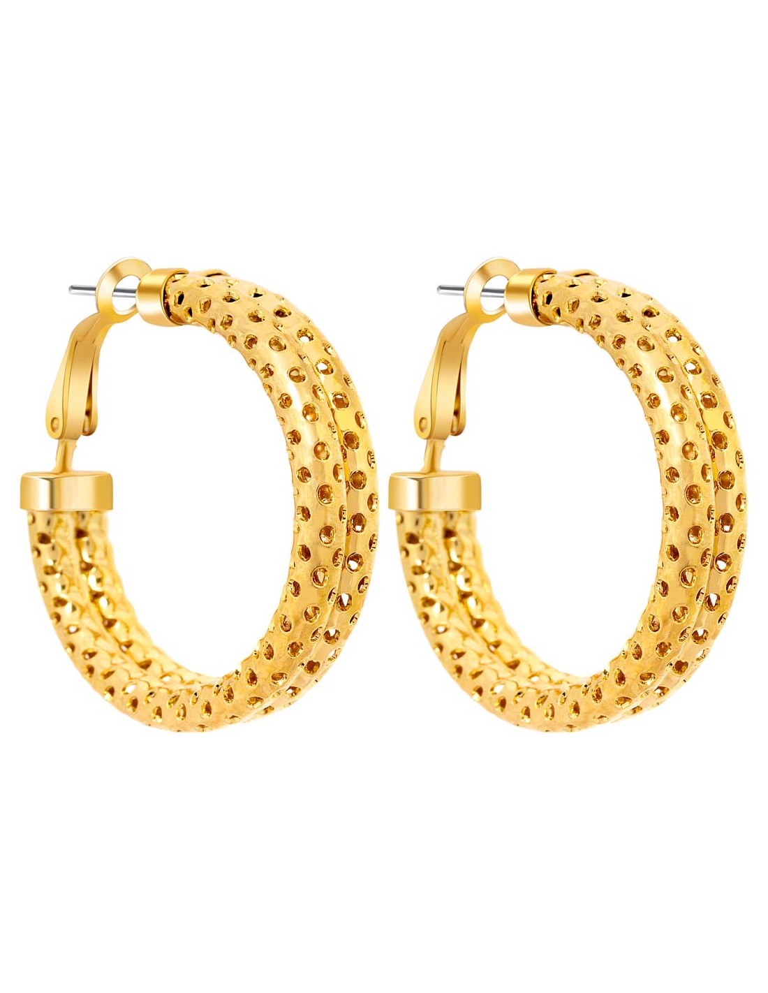 Boucles d'oreilles LORENE DOUBLE Gold Créoles tubes Double tube percé Doré Laiton doré à l'or fin