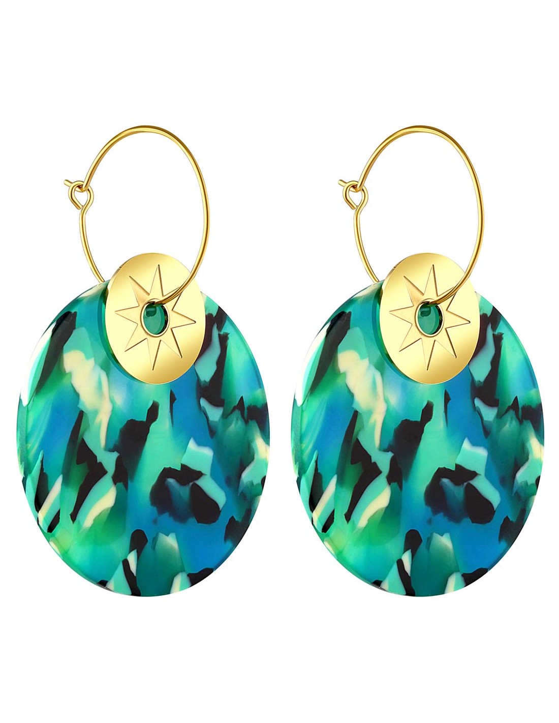 Boucles d'oreilles ASTROS STEEL EMERALD & GOLD Vert Emeraude Acier inoxydable doré à l'or fin Résines