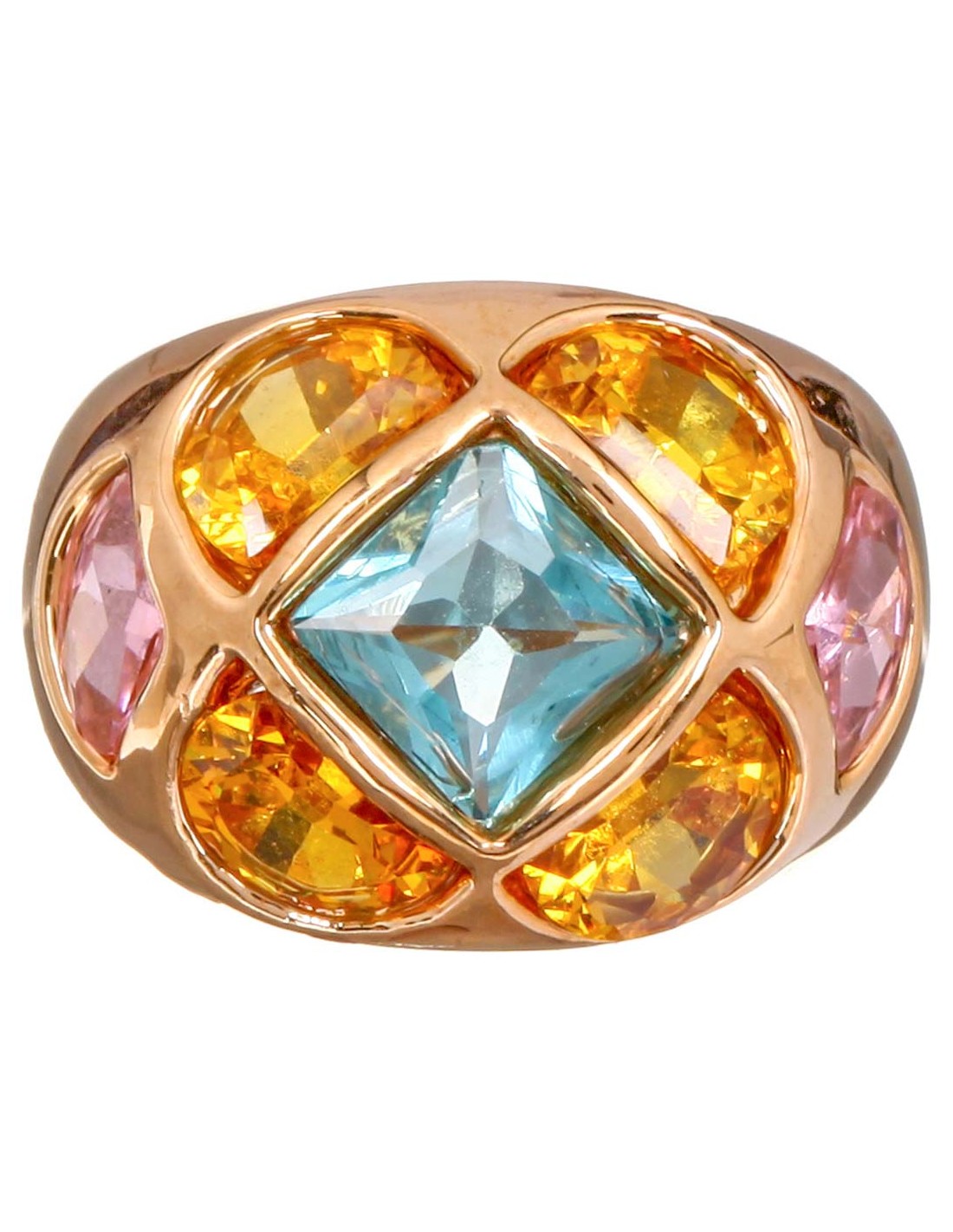 Bague SPRINGDOME Color Gold Cocktail Pavé Bombé Doré et Multicolore Laiton doré à l'or fin Oxydes de zirconiums sertis