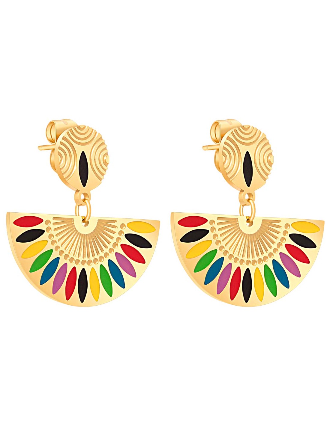 Boucles d'oreilles GYPTOS STEEL Color Gold Pendantes courtes Ethnique amérindien Doré et Multicolore Acier inoxydable émaux
