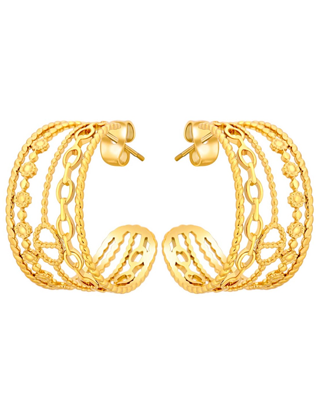Boucles d'oreilles CHAINELLA Gold Créoles ajourées Accumulation de chaînes Doré Acier inoxydable doré à l'or fin