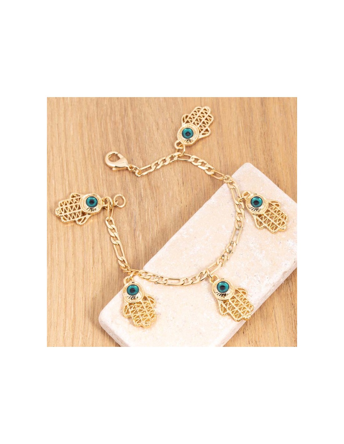 Bracelet EYONE Blue Gold Bracelet chaine souple Œil et main de fatma Doré et Bleu Laiton doré à l'or fin Résines