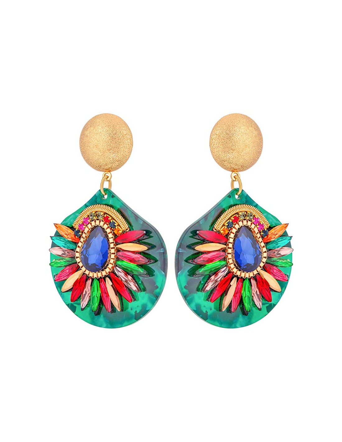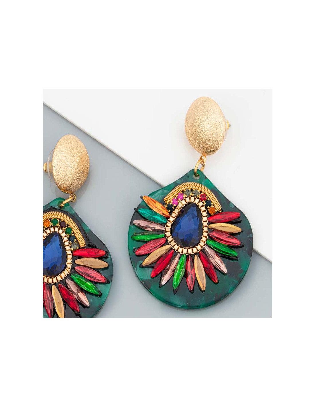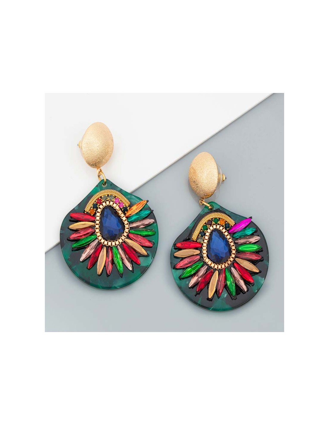 Boucles d'oreilles EKINOSA Color Gold Pendantes pavées Couronne de cristal Multicolore Laiton doré à l'or fin Cristal Résines