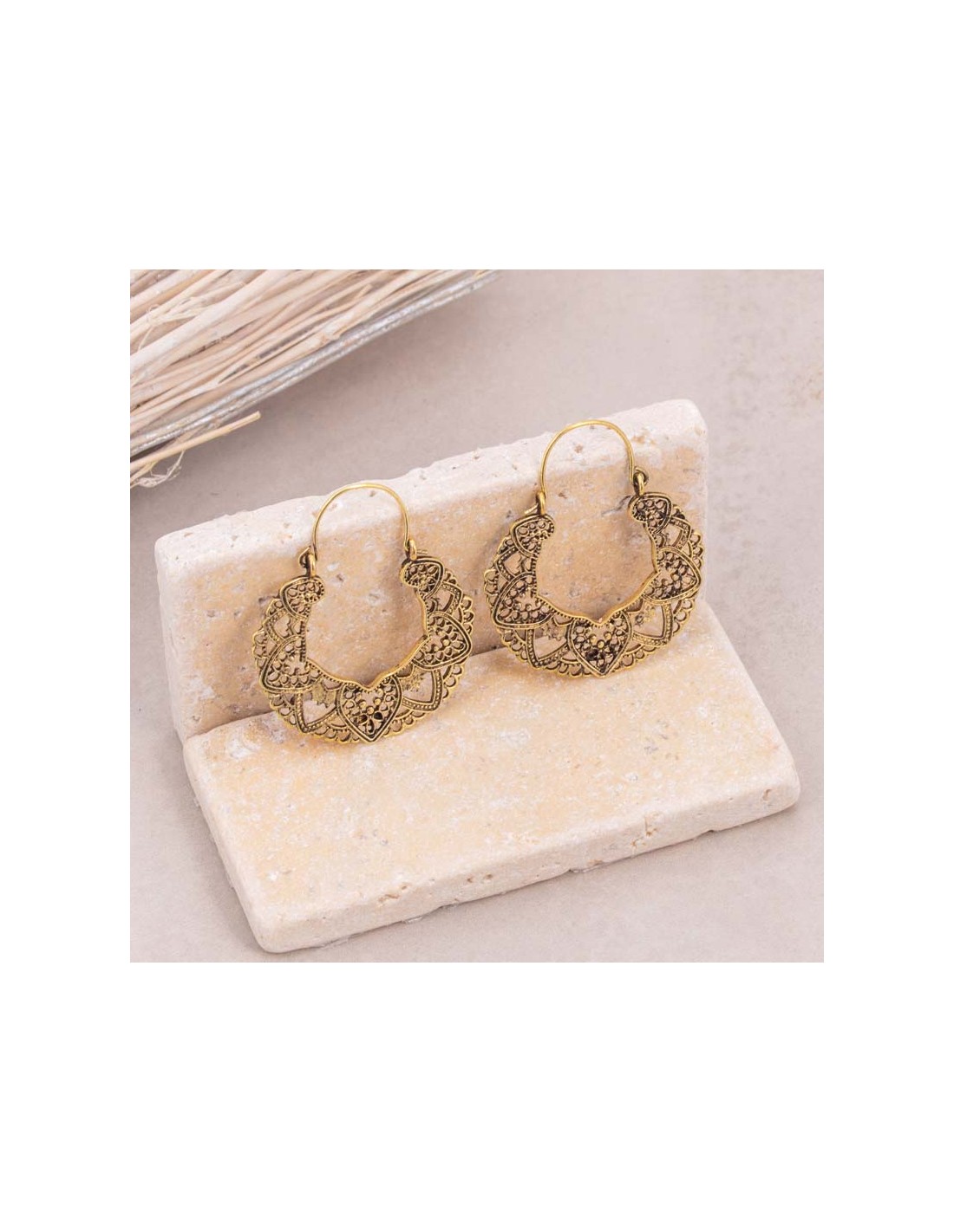 - Description… Boucles d'oreilles RAJANE Créoles disques ajourées Floral