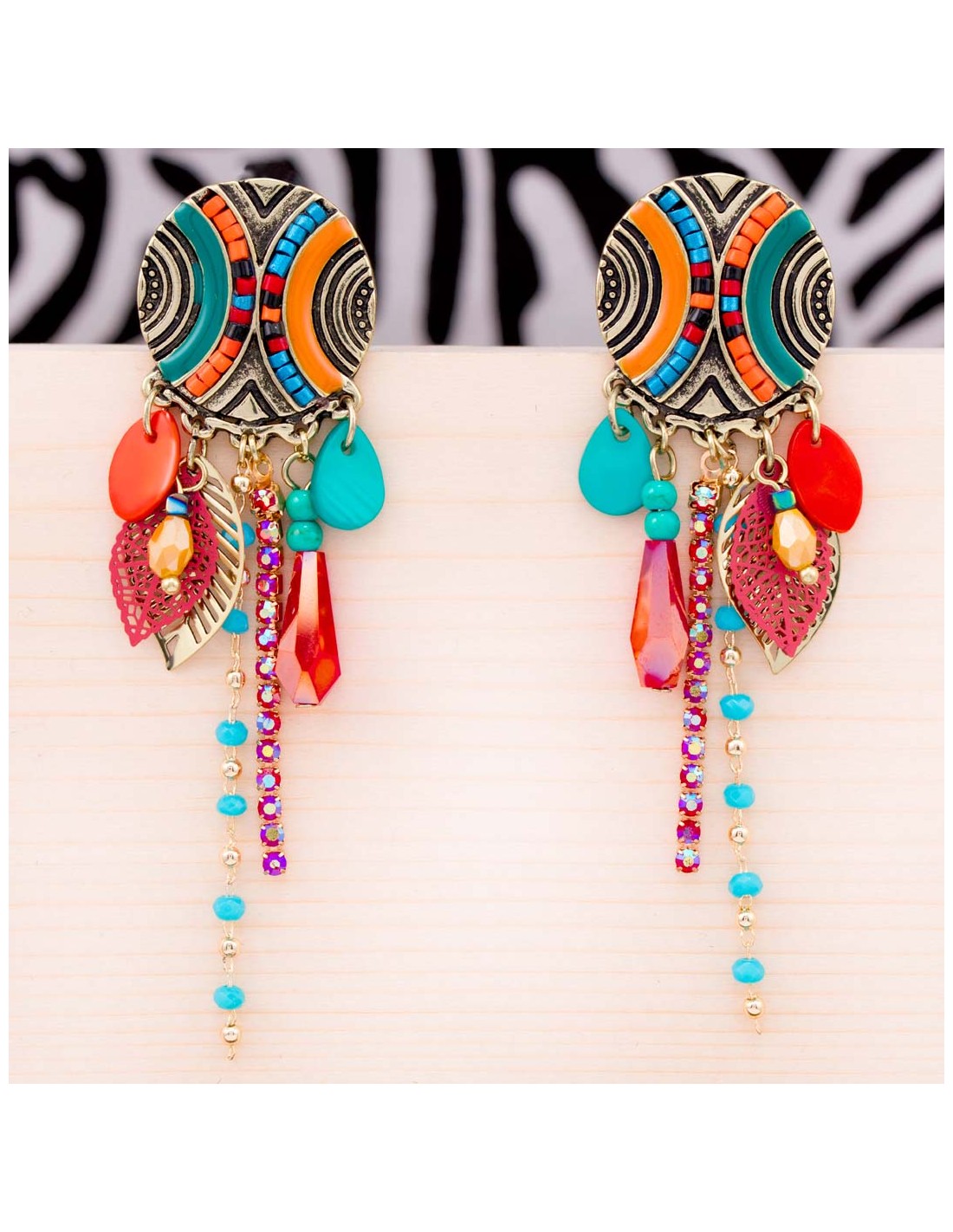 Boucles d'oreilles AYUTIS Color Gold Pendantes à pendentif Ethnique Doré et Multicolore Doré à l'or fin Cristal